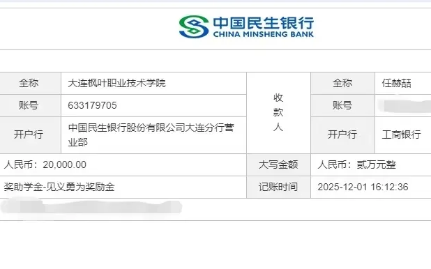30日,学院设立 “见义勇为专项基金”,传递校园正能量。