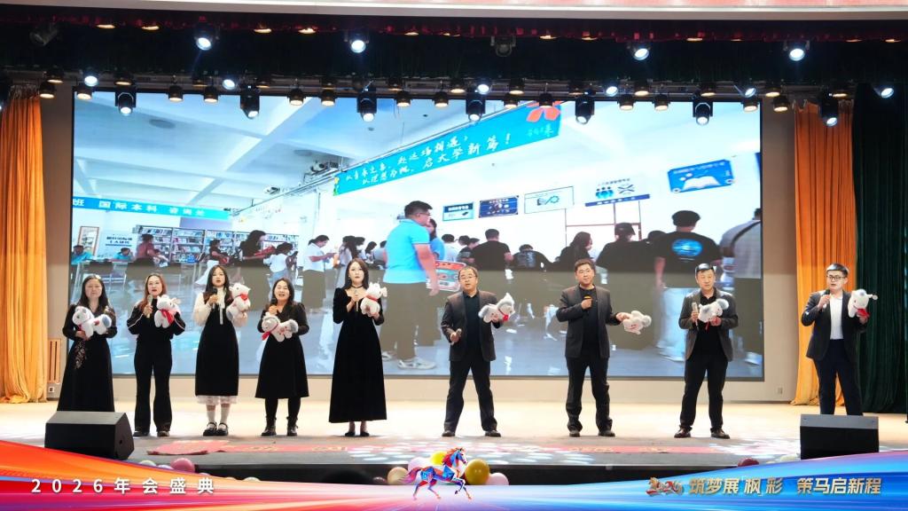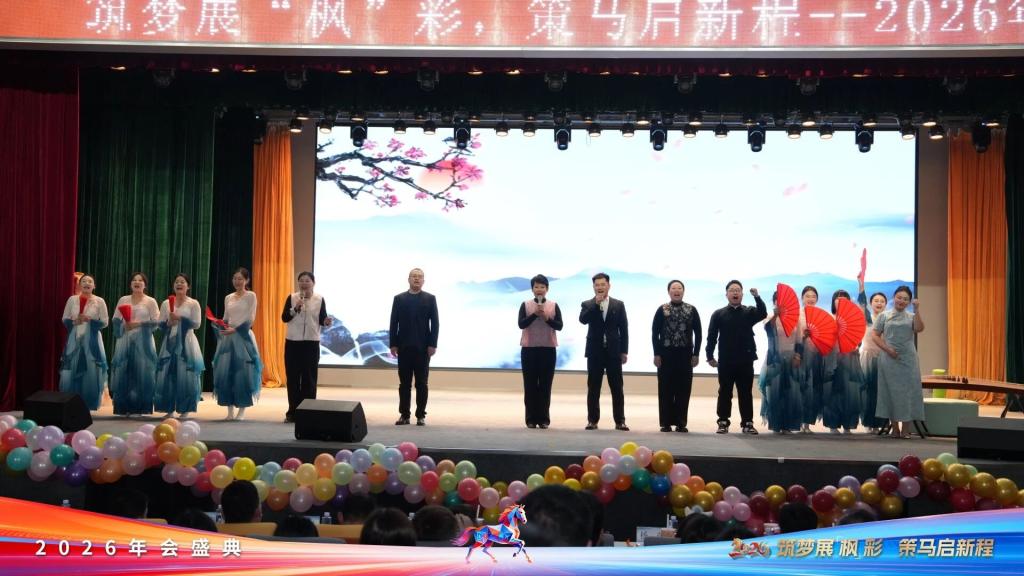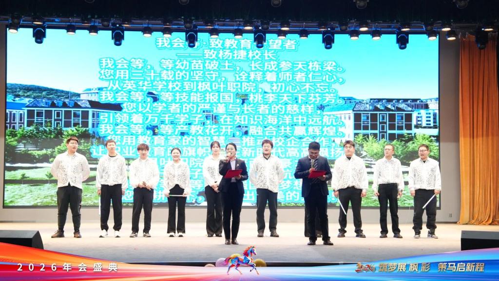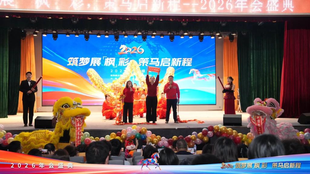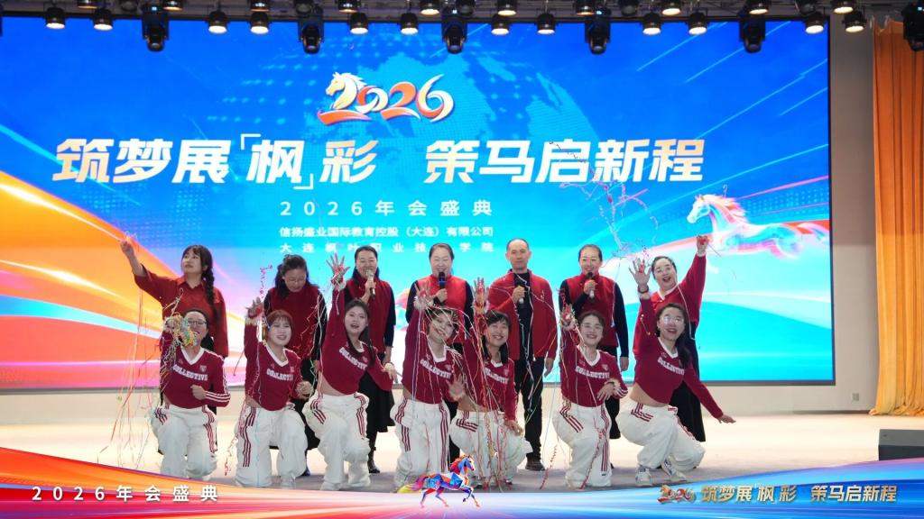 2026年1月8日,大连枫叶职业技术学院“筑梦展‘枫’彩,策马启新程”2026年年会在七顶山校区报告厅隆重启幕。集团董事长杨萍、学院党委书记魏晓峰、校长杨捷携领导班子与全体教职工欢聚一堂,回望奋斗征程,共绘未来蓝图,于欢声笑语中凝聚奋进合力。