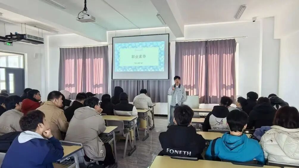 各院系立足专业特色,百花齐放打造特色鲜明的“开学第一课”,让英雄精神与专业学习、职业发展同频共振。护理产业学院创新打造“课堂+实践+职场”三维育人场景,课前开展学业规划、安全教育等前置指导,课堂上将辽宁时代楷模先进事迹与护理职业素养深度融合,同步组织拔罐操作、急救演练等实战训练;更由院长带队,组织师生走进大连市春季人才招聘会开展沉浸式职场教学,让学子直面行业需求、明晰成长短板,实现铸魂育人与职业引领双提升。