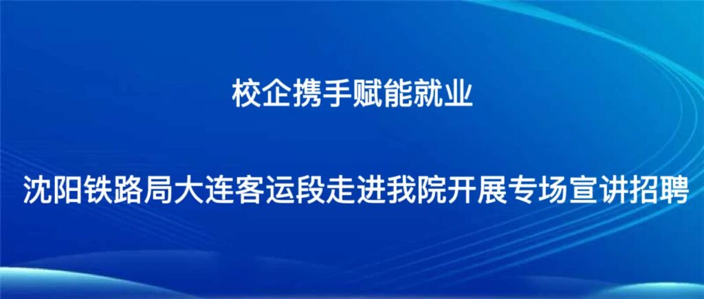为深入推进校企合作,拓宽毕业生就业渠道,助力2024级及后续毕业班学生精准求职,3月30日,我院特邀沈阳铁路局大连客运段走进校园,成功举办就业宣讲暨现场招聘面试活动。大连客运段副段长杨璞、副段长李宏有、动车一队队长魏文忠、副队长刘美曦、动车二队工程师李陶然,大连站站长王广鹏一行14人莅临现场,我院创新创业学院高红印院长、智慧城市服务产业学院辛赏月院长全程出席活动并予以指导,本次活动通过企业展示、服务展演、经验分享、政策宣讲与现场面试五大环节,为学子搭建直通优质岗位的桥梁。