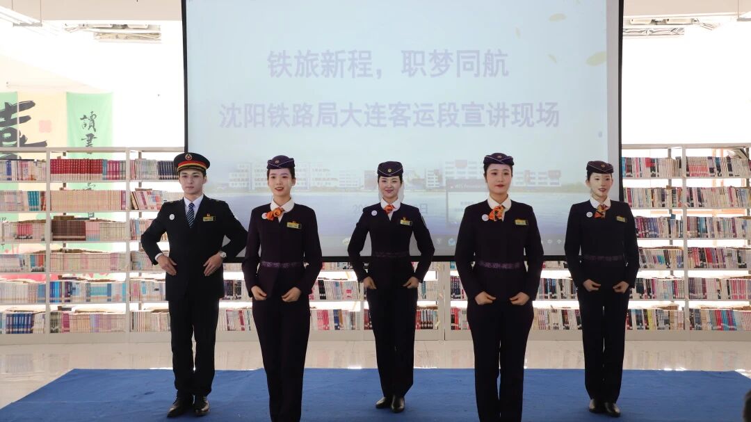 本次活动旨在深化产教融合,推动企业与学院高质量合作。活动现场,大连客运段工作人员首先播放官方宣传片,全面展示企业发展历程、服务特色与岗位体系,帮助同学们系统了解铁路客运系统的运作模式、岗位要求与职业前景,对铁路系统的整体布局和大连客运段的定位形成初步认知。随后,沈阳铁路局大连客运段“小云服务有礼团队”进行现场服务展演。成员们依次展示标准服务礼仪、旅客引导流程和重点旅客帮扶机制,以专业规范的动作和温暖的服务态度,呈现铁路客运服务的专业素养与人文温度,赢得在场师生的一致认可。在经验分享环节,我校2024级毕业生臧振博受邀登台。他结合自己在铁路岗位的工作经历,从求职准备、岗位适应、职业成长路径等方面进行分享,为学弟学妹提供可借鉴的实战经验和方向指引。