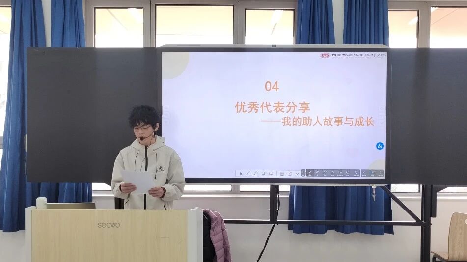 培训最后,优秀心理委员代表分享工作经验。数字经济产业学院魏义家结合真实案例,讲解心理帮扶流程、沟通技巧与工作边界,提醒大家关注同学情绪。贴近实际的分享让学员收获满满,坚定了护航同伴心灵成长的初心。