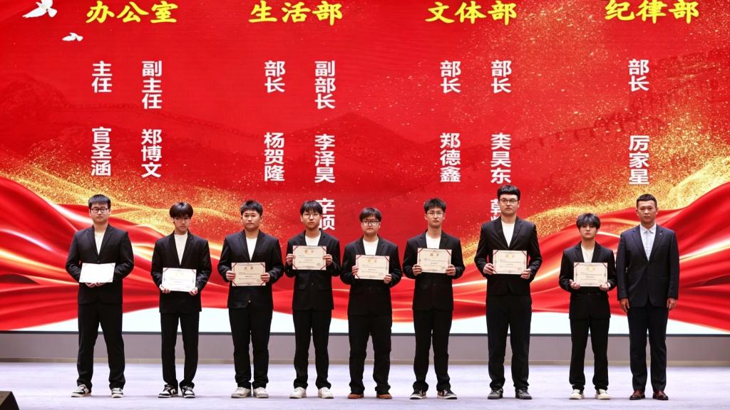 本次聘任涵盖了团委副书记、宣传部、组织部等核心岗位,以及学生会主席团、办公室、生活部、纪律部、文体部等职能部门。受聘学生骨干依次登台接受聘书,展现出昂扬向上的精神风貌。