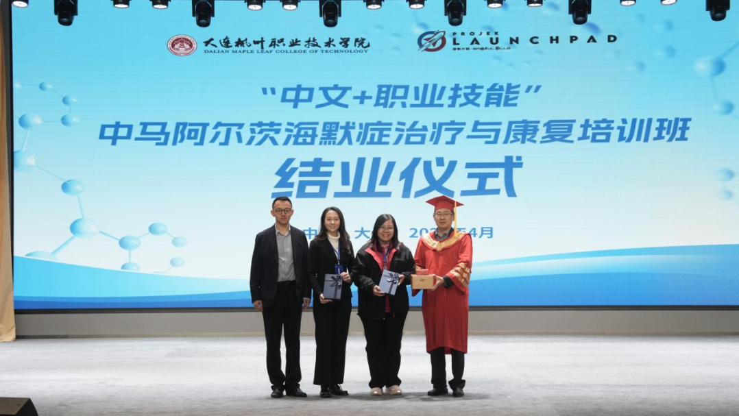 春风送暖,山海相逢。2026年3月26日,马来西亚国家技术职业教育培训委员会代表团一行远道而来,莅临大连枫叶职业技术学院,开展为期12天的“中文+职业技能”阿尔茨海默症治疗与康复专题培训交流。历经系统理论学习、临床机构参访与技能实操实训,本次国际培训交流圆满完成各项议程,在学校七顶山校区报告厅顺利举行结业仪式,一场以中文为桥、以技能为媒、以友谊为纽带的跨国职教交流圆满落幕。