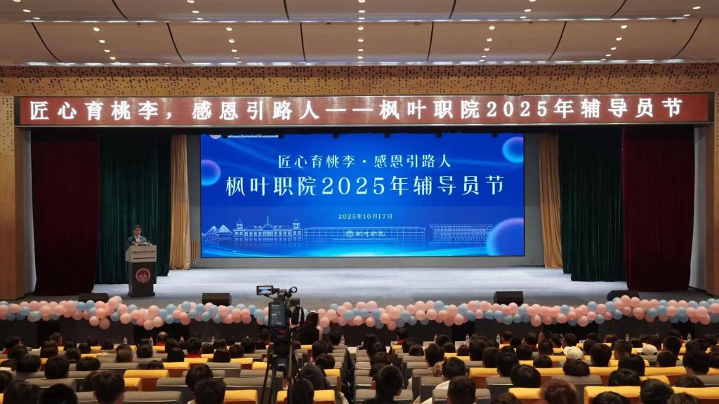 2025年10月17日,枫叶职院七顶山校区报告厅暖意融融,以 “匠心育桃李,感恩引路人” 为主题的首届辅导员节在此隆重举行。集团董事长杨萍、党委书记魏晓峰、校长杨捷、党委副书记/组织部部长金晓晖、副校长张冬冬、副校长高成林、工会主席/继续教育学院院长王忠泽、纪委书记/党政办公室主任/人事处处长贾志海、董事长助理/校长助理/统战部部长艾立斯、校长助理/马克思主义学院院长/护理产业学院院长王珊、行政部门/二级院系领导...