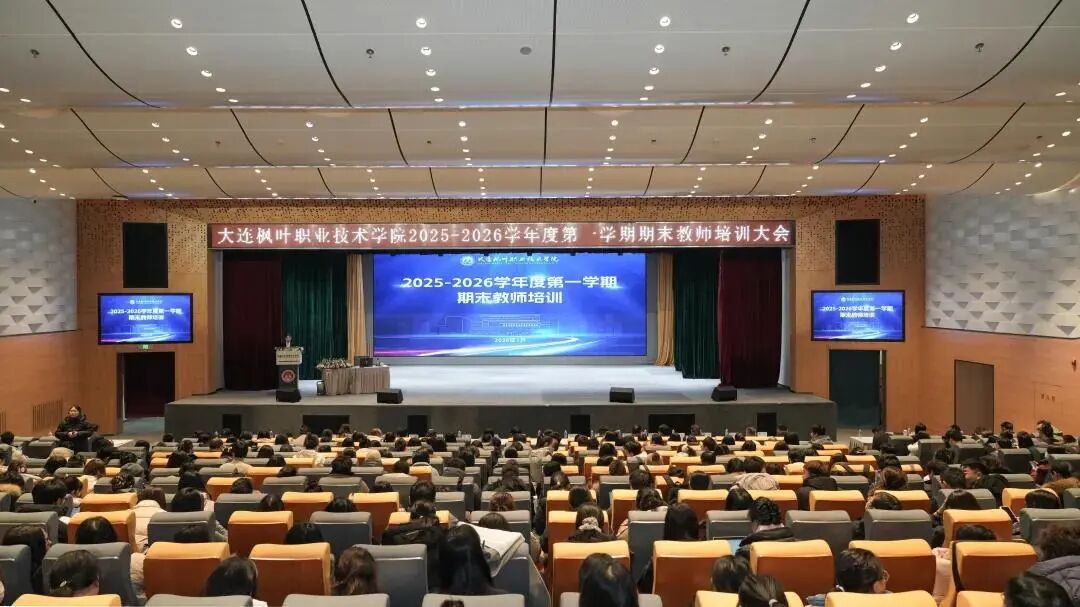 培训前言1月7日,大连枫叶职业技术学院2025-2026学年度第一学期期末教师培训大会在七顶山校区圆满收官。本次培训从1月4日持续至1月7日,培训内容丰富多样,精准聚焦当下课程改革要点,致力于全方位提升教师的专业素养与创新能力。培训涵盖专家讲座、课改成果汇报研讨、教务、科研、学生管理、AI赋能、行政管理等多个方面。回望这几日满载收获的培训时光,每一位参与者都全心投入,把自己对教育事业的赤诚与对学院未来的期许,倾...