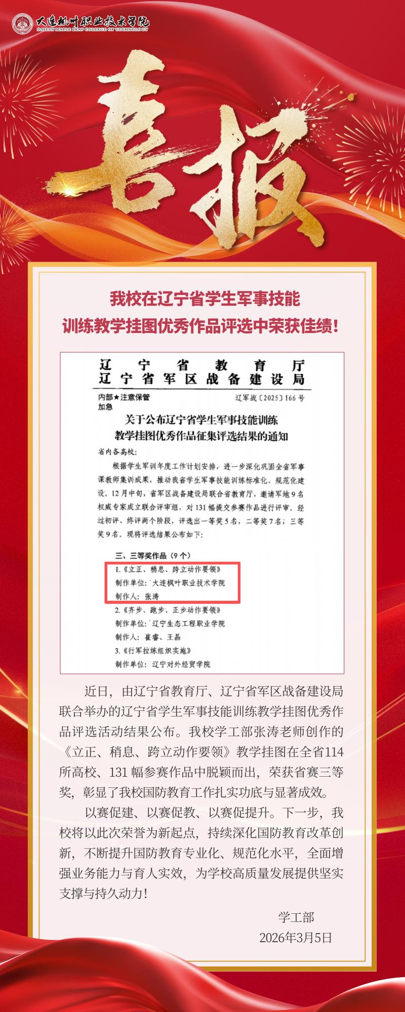 为深入贯彻就业优先战略,扎实推进毕业生高质量充分就业,严格落实就业工作“一把手”工程部署,3月7日,大连枫叶职业技术学院由主管副校长高成林带队,创新创业学院牵头,各二级学院主要领导共同组成访企拓岗专项工作组,赴大连国际会议中心集中参与大连市2026年春季人才招聘大会,开展校企对接、岗位拓展、合作洽谈系列行动。本次行动是学院紧扣区域产业发展需求、打通人才培养与就业输送“最后一公里”的关键举措。在招聘会...
